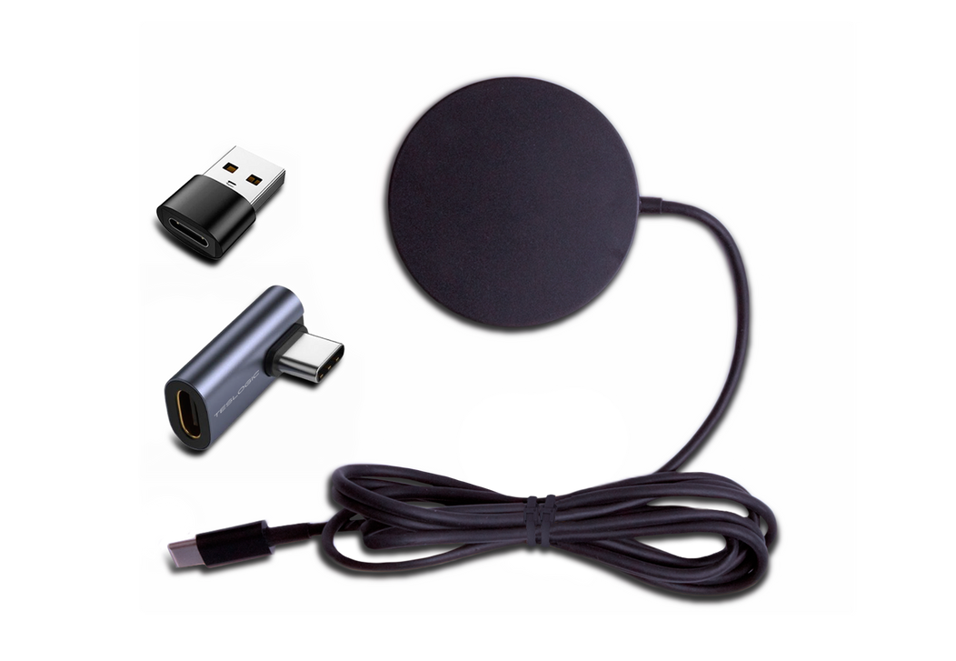 A convenient addition to the Teslogic kit. This magnetic charger installs on a phone holder (which is included in the kit) instead of a magnet. It is compatible with the iPhone 12 and above, as well as any phone that supports wireless charging (when using the included magnetic ring).